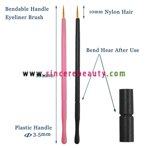 Users can bend the handle after use to identify it from unused eyeliner brush.