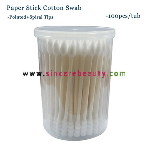 Pointed-Spiral Paper Stick Cotton Swab-100