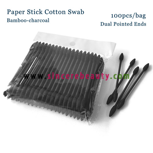 Paper Stick Bamboocharcoal Cotton Swab-100