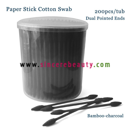 Paper Stick Bamboocharcoal Cotton Swab-100